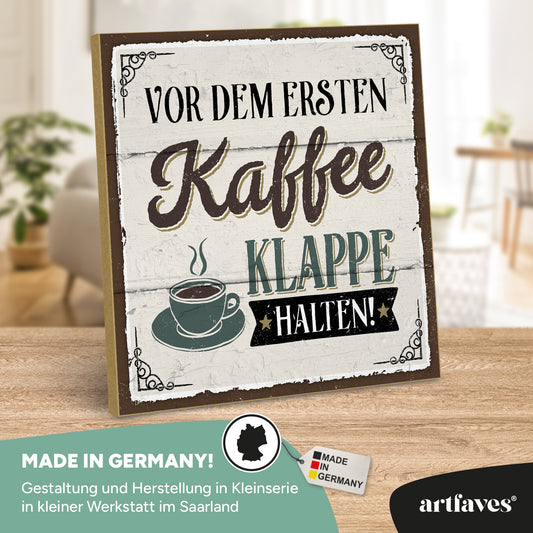 Schild mit Spruch - Vor dem ersten Kaffee Klappe halten - witzige Sprüche, Kaffee