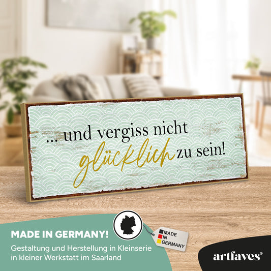 Schild mit Spruch - Vergiss nicht glücklich zu sein - Glücklichsein, Trost