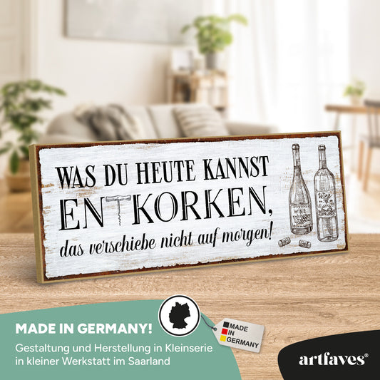 Schild mit Spruch - Was du heute kannst entkorken - Wein, witzige Sprüche
