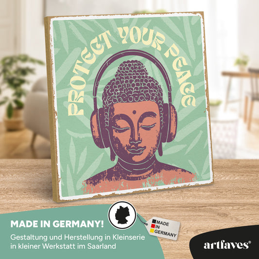 Schild mit Spruch - protect your peace buddha - Spiritualität, Achtsamkeit