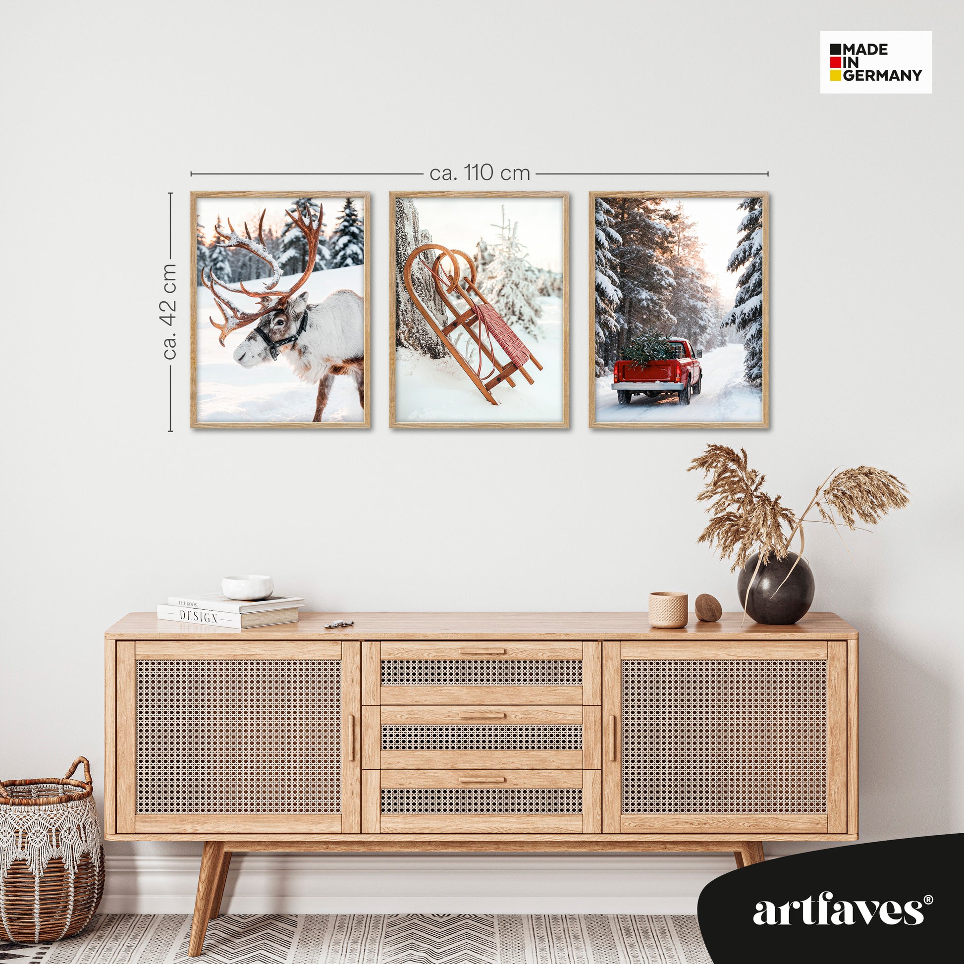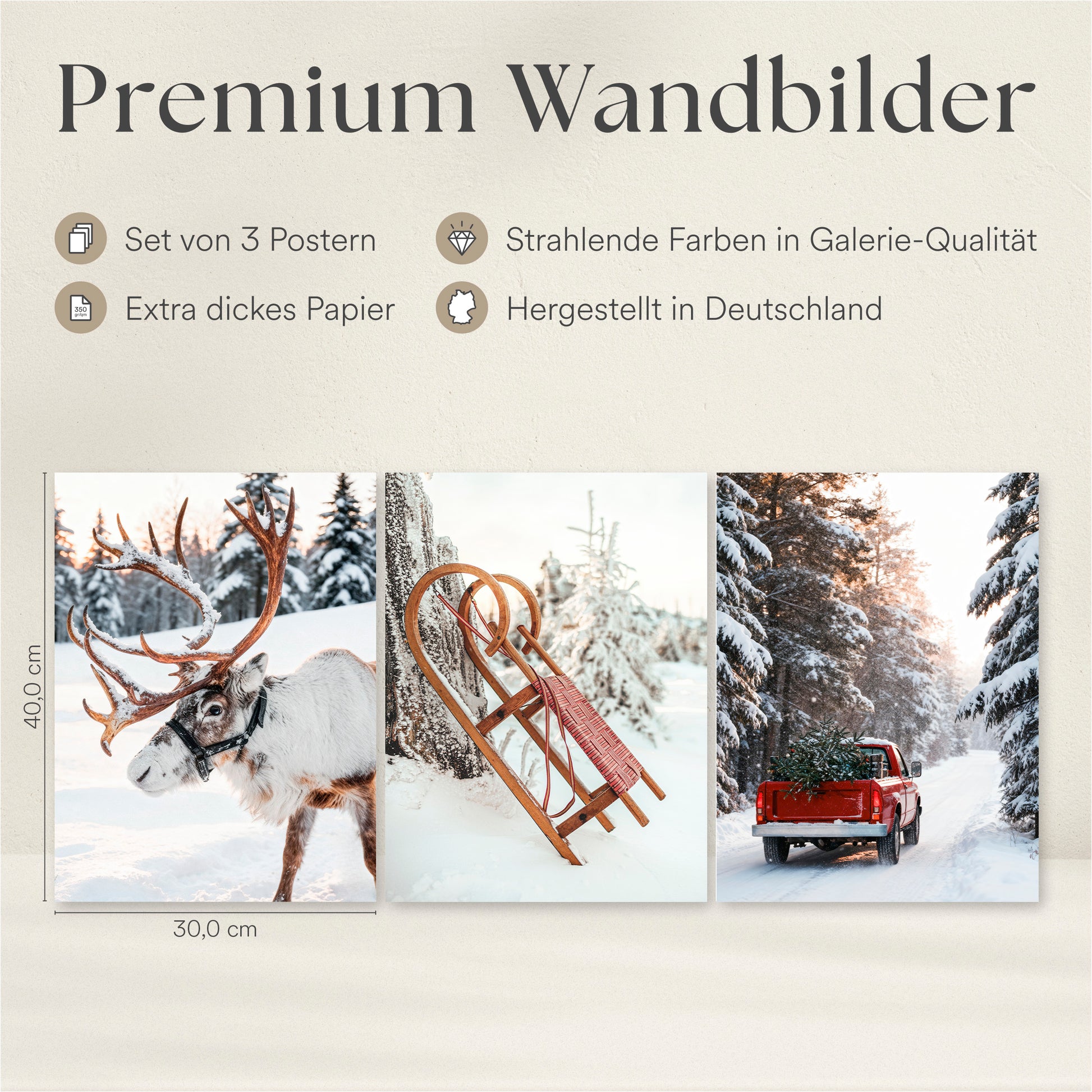 Poster Set - Christmas Trio 1 - 3 Deko Wandbilder Weihnachten Schnee Winter