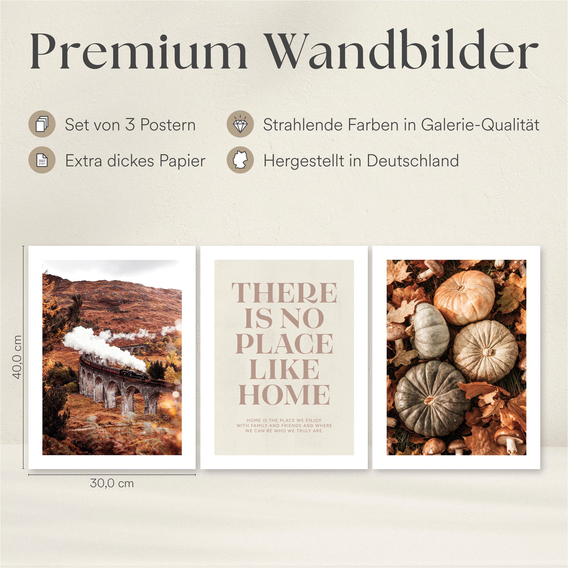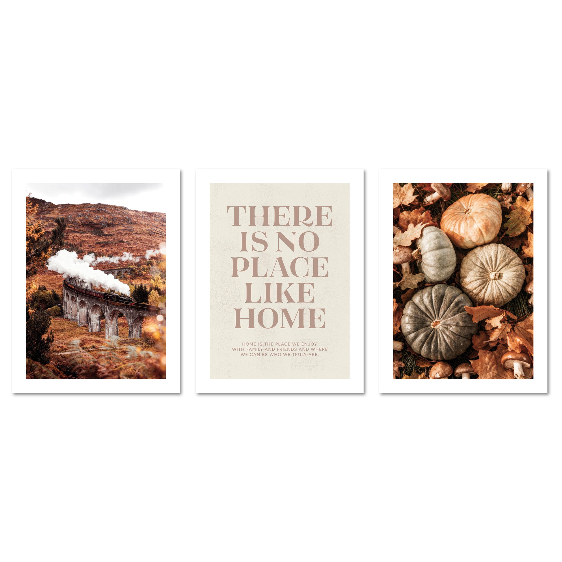 Poster Set - Herbst Momente 1 - 3 Deko Wandbilder Kürbisse Glenfinnan Viaduct