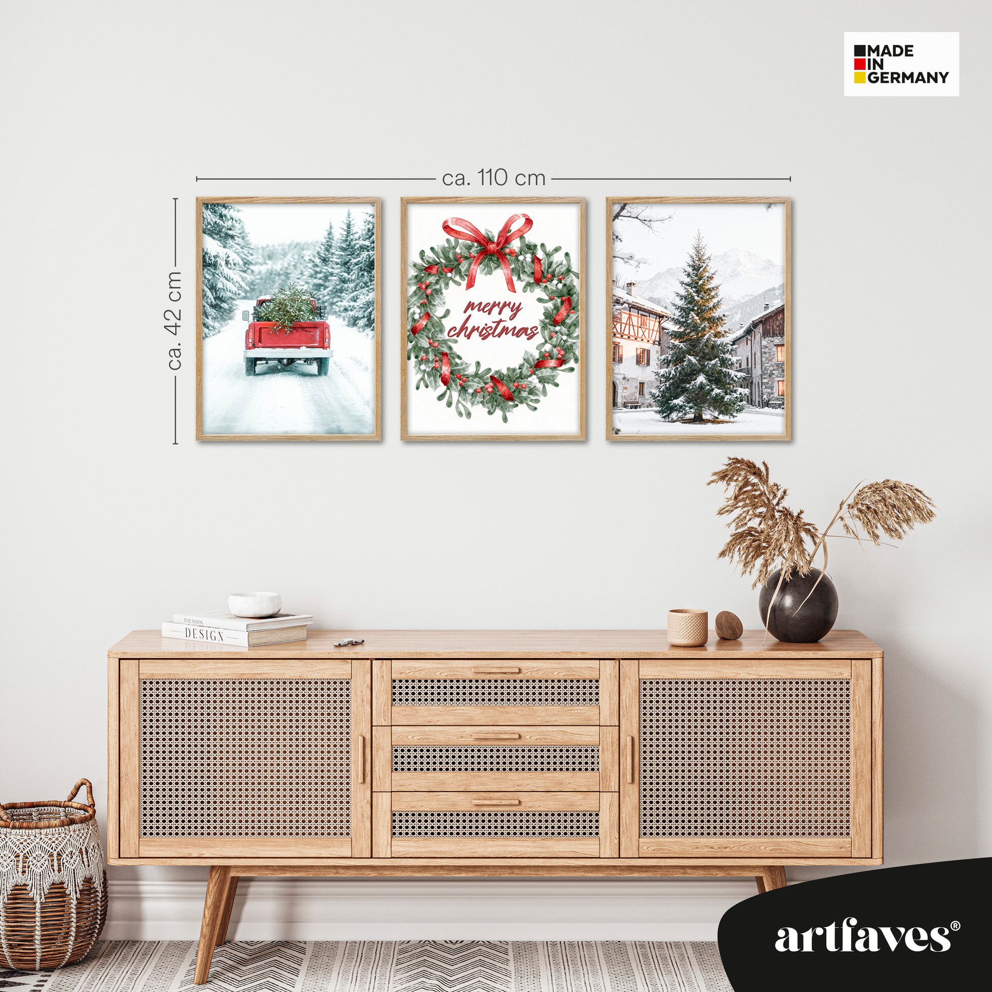 Poster Set - Merry Christmas - 3 Deko Wandbilder Weihnachten Schnee Winter