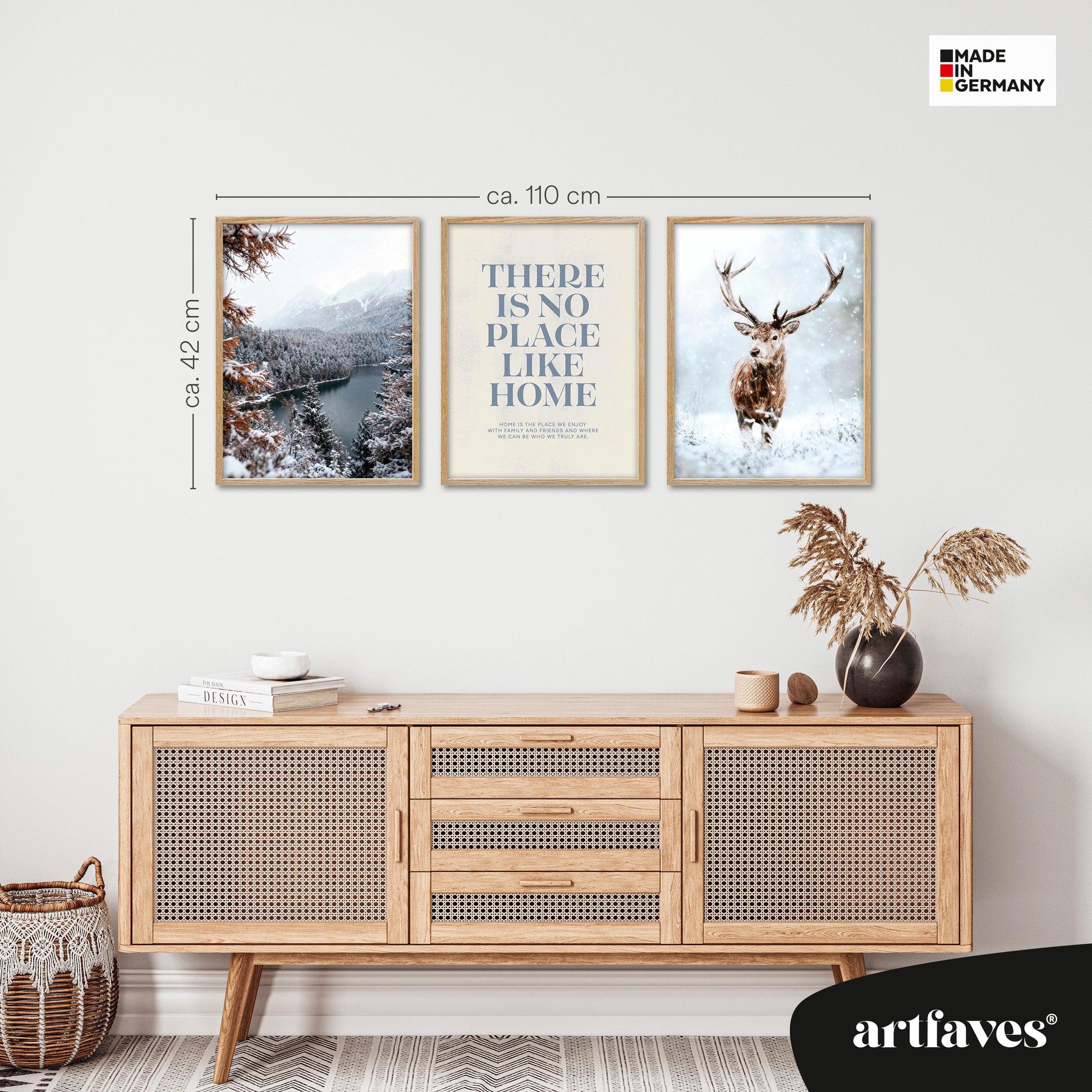 Poster Set - Winter Momente 1 - 3 Deko Wandbilder Hirsch See