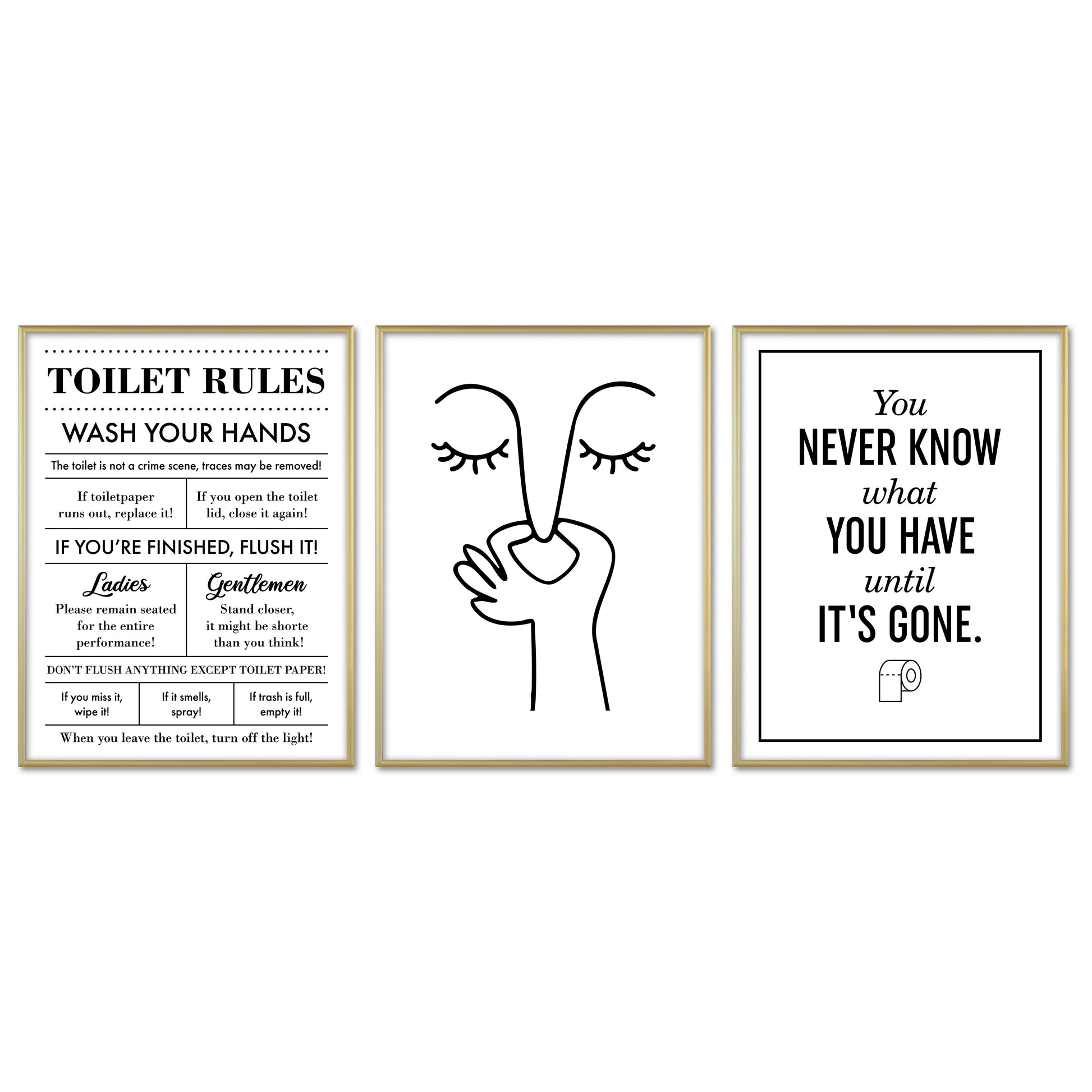 Poster Set - Toilet Fun - 3 Deko Wandbilder witzig, schwarz-weiss